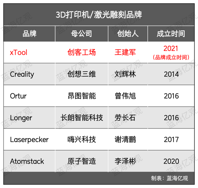 王筑军及团队出现,欧美片面创作文明兴盛,于是劈头对准消费级激光雕琢机赛道。2021年,王筑军带着团队创办xTool品牌,定位为“消费级专业器材”,并于同年推出首款桌面激光雕琢机xTool D1,随后踏上了高速延长的道道。
